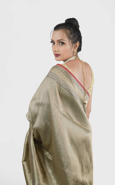 Speciality: This saree boasts captivating color, an alluring bootidaar pattern, and a graceful zari sheen. Skilled Banarasi artisans use a blend of zari threads and silk, adding a captivating glow to the Tissue fabric.