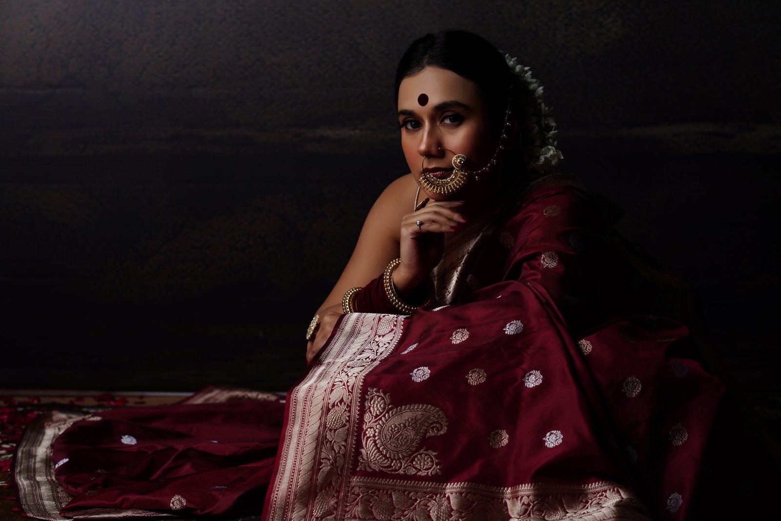 A saree that blends traditional storytelling with luxurious craftsmanship—graceful, enduring, and truly timeless.