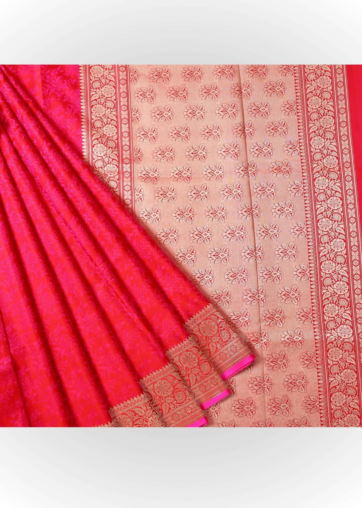 Pure Katan Silk Banarasi Tanchoi hot pink dualtone gold zari saree