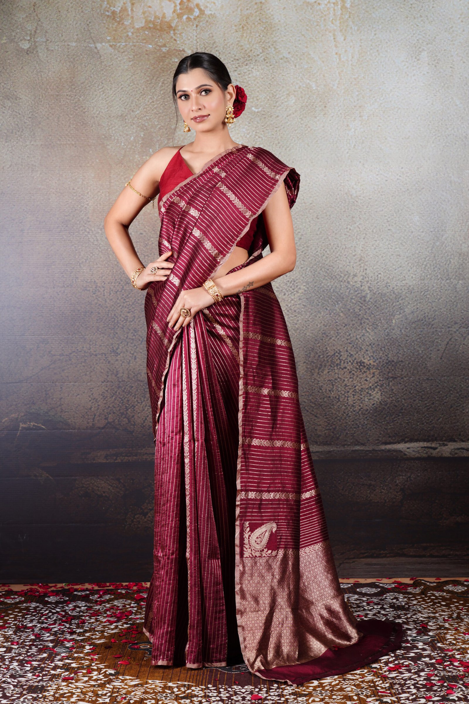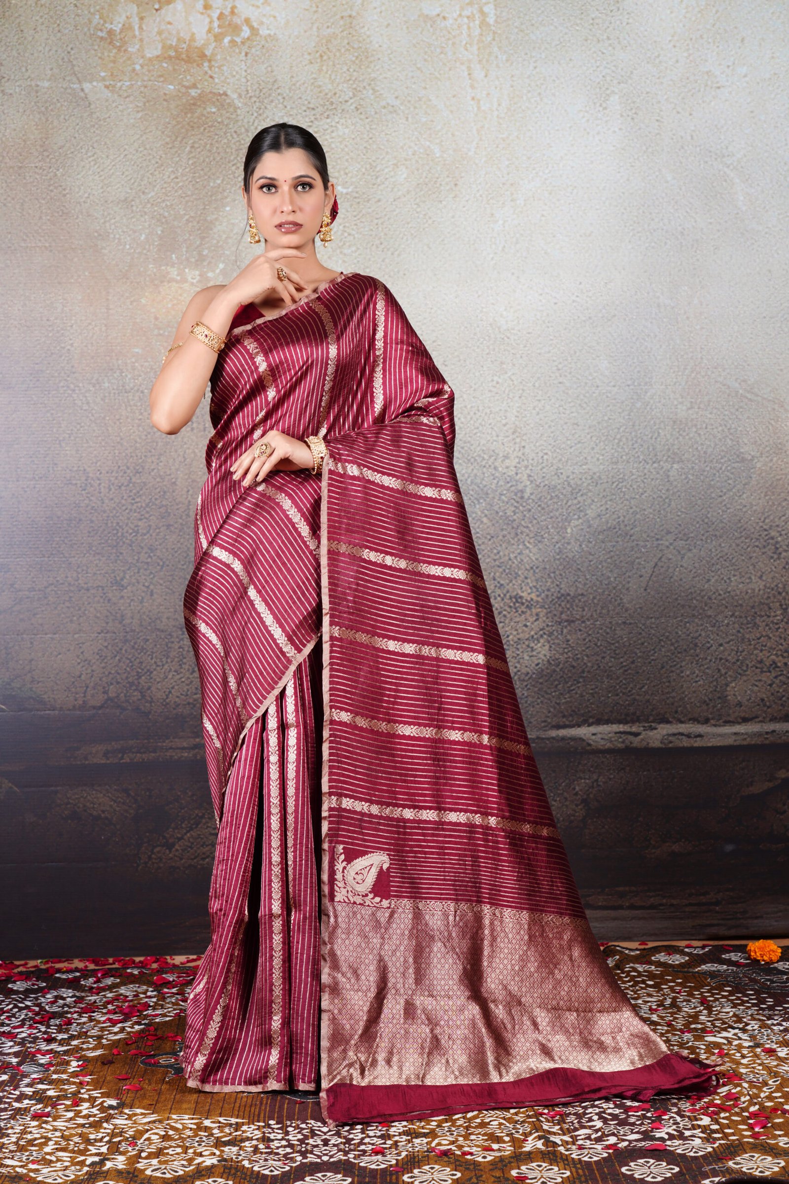 A saree that blends heritage weaving with contemporary refinement—crafted to stand out with timeless beauty.
