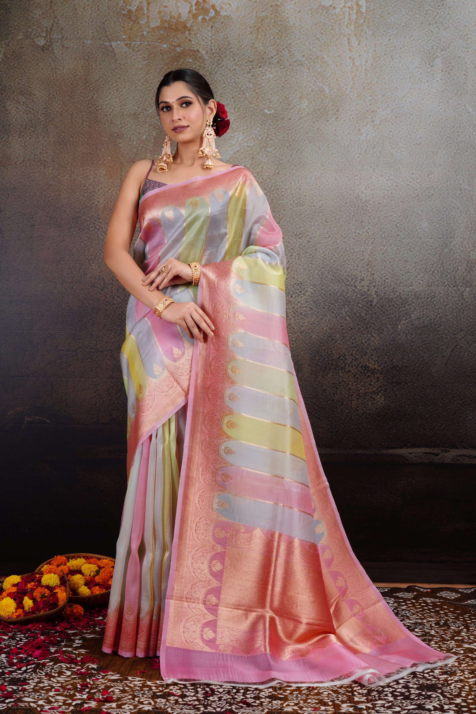 - Handwoven by skilled Banarasi artisans