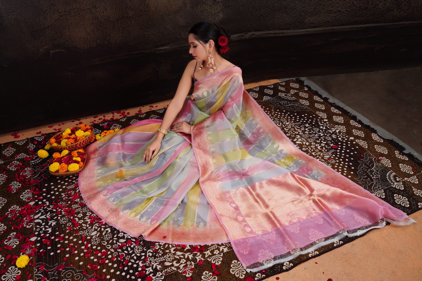 - Pure Kora silk: sheer, lightweight, ethereal drape